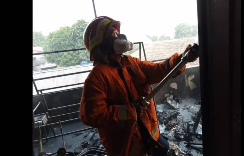 "Tim tiba di lokasi pada pukul 16.15 WIB dan berhasil memadamkan api pukul 16.30 WIB. Penyebab kebakaran diduga dari korsleting outdoor AC. Percikan api menyambar tumpukan kertas didekatnya, sehingga mengeluarkan kepulan asap hitam," ujarnya.