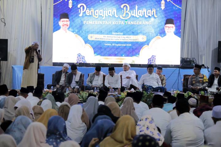 Pengajian Bulanan Pemerintah Kota (Pemkot) Tangerang terasa lebih istimewa di momen Maulid Nabi Muhammad SAW. Kegiatan kali ini menghadirkan Habib Umar bin Salim Al Hadad dari Pasuruan dan penceramah K.H. Ahmad Sonhaji. Wali Kota Tangerang, H. Sachrudin, beserta jajaran dan masyarakat turut hadir di kediaman Wakil Wali Kota Tangerang, H. Maryono Hasan, di Perumahan Setneg, Panunggangan Utara, Kecamatan Pinang, Kota Tangerang, Selasa malam (30/09/2025).