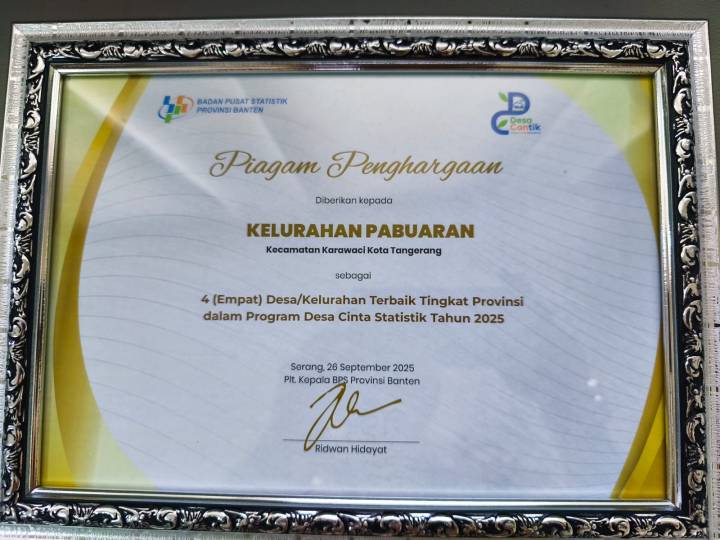 Prestasi membanggakan kembali diraih oleh Pemerintah Kota Tangerang. Kelurahan Pabuaran, Kecamatan Karawaci, berhasil meraih penghargaan sebagai Kelurahan Cantik (Cinta Statistik) tingkat Provinsi Banten Tahun 2025, dari Badan Pusat Statistik (BPS) Provinsi Banten.