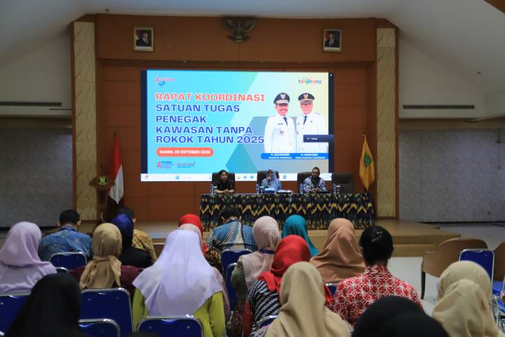 Melalui Satuan Tugas (Satgas) Penegak Kawasan Tanpa Rokok (KTR), Pemkot Tangerang terus memperkuat penegakan Peraturan Daerah (Perda) Nomor 8 Tahun 2024 tentang KTR melalui Rapat Koordinasi (Rakor) di Aula Al Amanah, Kamis (23/10/25).
