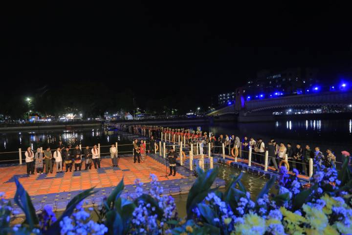 Ribuan warga memadati kawasan Jembatan Kaca, Sungai Cisadane, pada pembukaan Cisadane Digital Festival 2025, Rabu malam (12/11).