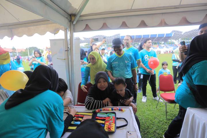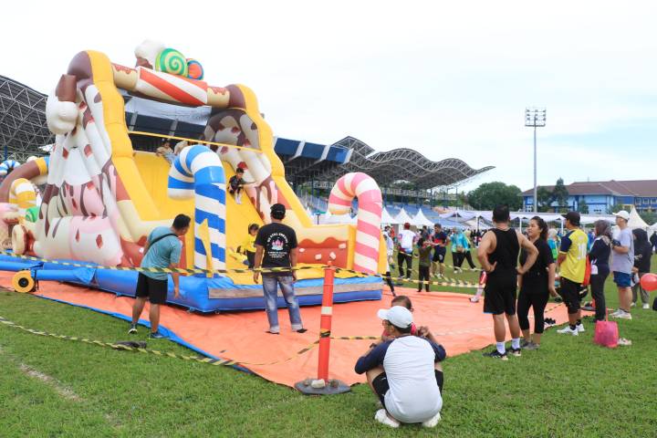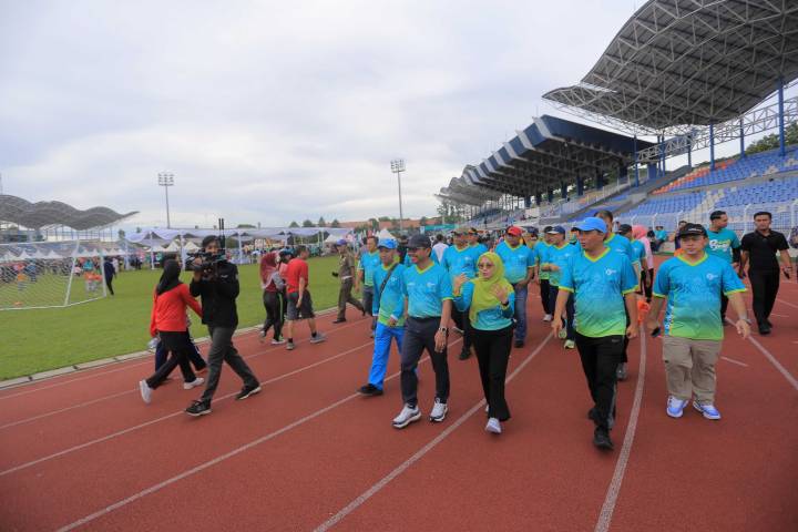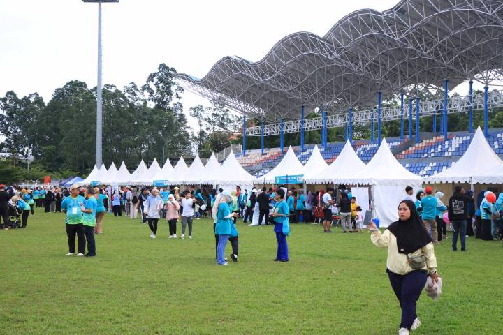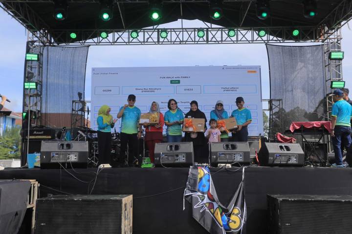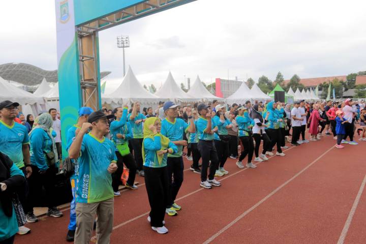 Acara berlangsung meriah dengan rangkaian kegiatan seperti senam bersama, gerak jalan sehat (fun walk), pembagian doorprize, serta pameran stan kesehatan dan UMKM.