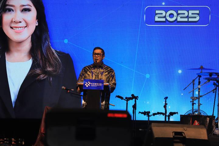 Rangkaian kegiatan akbar Festival Komunitas Informasi Masyarakat (KIM) Nasional 2025 yang diselenggarakan Kementerian Komunikasi dan Digital (Komdigi) Alun-Alun Kota Tangerang, Sabtu Malam (15/11/25) resmi ditutup dengan meriah dengan penampilan band Ndarboy Genk.