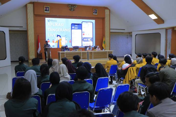 Dalam kesempatannya, Herman, menjelaskan pentingnya mahasiswa untuk aktif menggunakan Tangerang LIVE sebagai platform digital yang terintegrasi dengan berbagai layanan masyarakat.