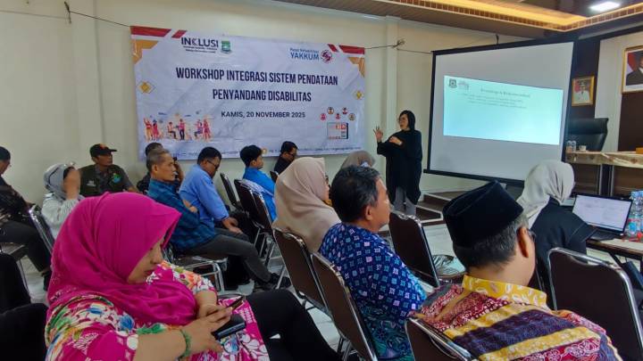 Dinas Sosial (Dinsos) Kota Tangerang bekerja sama dengan Yayasan Difabel Mandiri Indonesia (YDMI) menyelenggarakan Workshop Integrasi Sistem Pendataan Penyandang Disabilitas sebagai upaya memperkuat layanan sosial berbasis data yang akurat, inklusif dan tepat sasaran, Jumat (21/11/25).