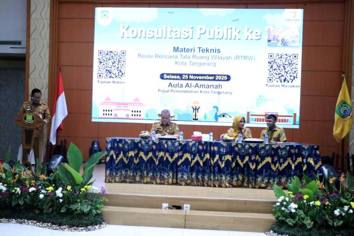 Pernyataan tersebut disampaikan Herman, saat membuka secara resmi acara Konsultasi Publik ke-2 Materi Teknis Revisi RTRW, yang diselenggarakan secara hibrid di ruang Al Amanah, Pusat Pemerintahan Kota Tangerang, pada Selasa (25/11/2025).