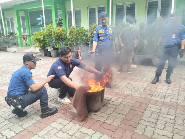 Selain mitigasi gempa, pegawai juga diberikan pelatihan penanganan kebakaran. Fokus utama pelatihan ini adalah penanganan api yang dipicu oleh gas bocor, termasuk cara pemadaman tradisional menggunakan handuk basah.