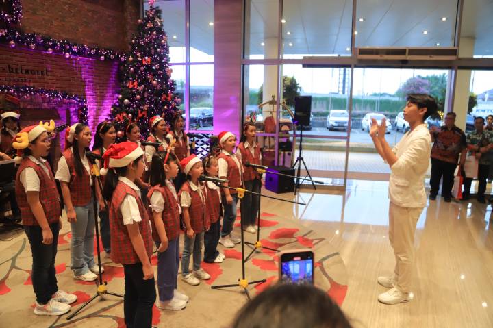 “Kami menghadirkan komunitas paduan suara anak-anak untuk memberikan suasana ceria dan mengapresiasi bakatnya, kita undang ke sini,” jelas Chika.
