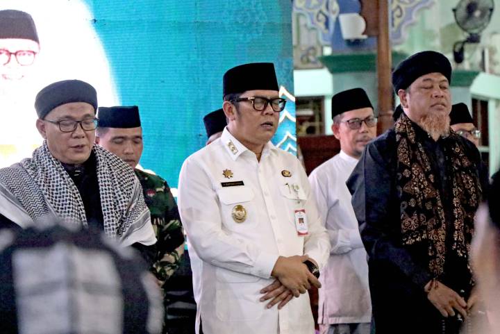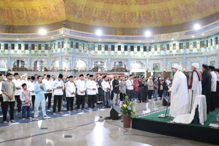 Wakil Wali Kota Tangerang, H. Maryono Hasan, bersama masyarakat dan jajaran Pemerintah Kota (Pemkot) Tangerang mengikuti kegiatan Muhasabah, Zikir, dan Salawat Menyambut Tahun Baru 2026 yang digelar di Masjid Raya Al-A’zhom, Kota Tangerang, Rabu malam (31/12/2025).
