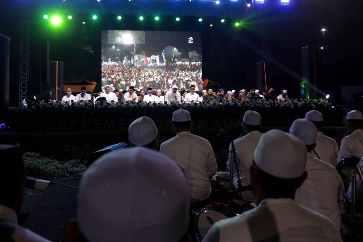 Lautan manusia memadati Taman Elektrik, Pusat Pemerintahan Kota Tangerang, Rabu malam (11/2/2026). Dengan penuh khidmat, puluhan ribu jemaah dari berbagai penjuru Kota Tangerang bahkan luar daerah larut dalam lantunan selawat pada gelaran Tangerang Berselawat 2026, yang digelar sebagai ungkapan syukur atas HUT ke-33 Kota Tangerang.