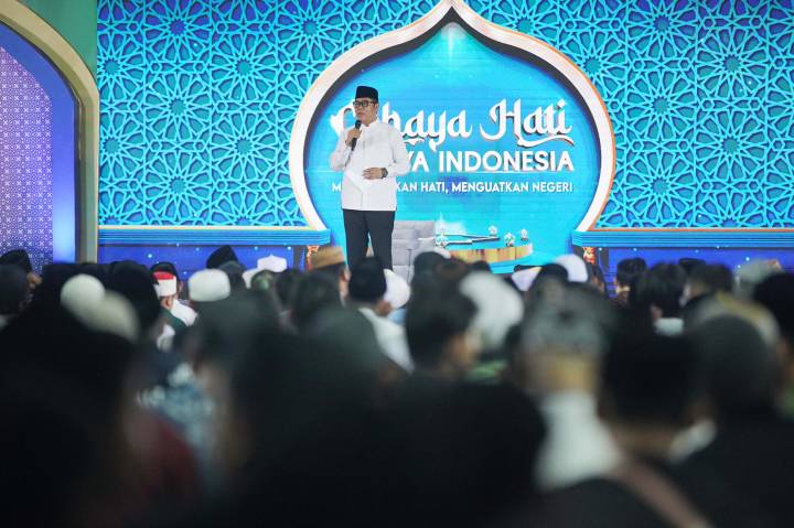 Ribuan jemaah kembali memadati Masjid Raya Al-A'zhom, Kota Tangerang, kali ini dalam kegiatan Cahaya Hati Cahaya Indonesia bertema “Menguatkan Hati, Menguatkan Negeri” yang digelar oleh salah satu stasiun tv nasional, Minggu malam (15/2/2026). Kegiatan ini menjadi bagian dari persiapan spiritual masyarakat dalam menyambut datangnya bulan suci Ramadan.