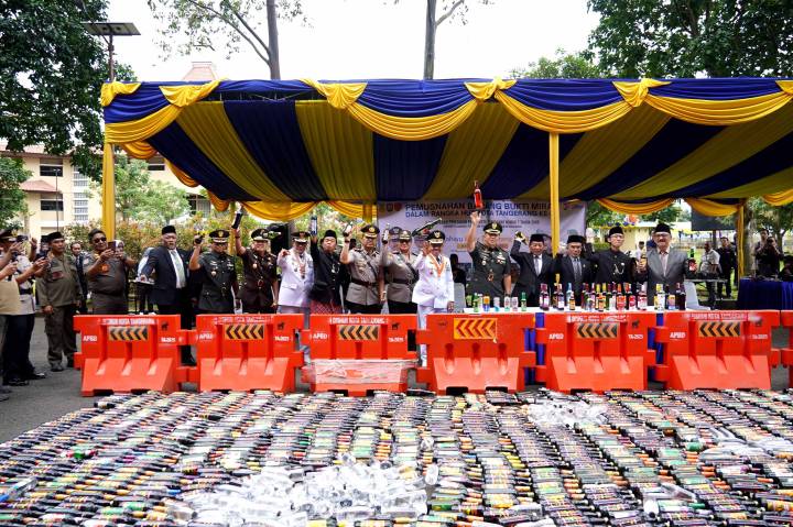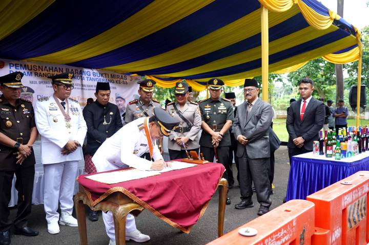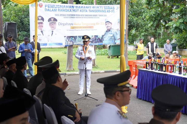 Dalam rangka penegakan Peraturan Daerah (Perda) Nomor 7 Tahun 2005 tentang Pelarangan Peredaran dan Penjualan Minuman Beralkohol, Pemerintah Kota (Pemkot) Kota Tangerang memusnahkan sebanyak 1.128 botol Minuman Keras (Miras). Kegiatan ini sekaligus menjadi bagian dari peringatan Hari Ulang Tahun (HUT) ke-33 Kota Tangerang dan wujud nyata komitmen pemerintah daerah dalam menjaga ketertiban umum, keamanan lingkungan, serta melindungi generasi muda.