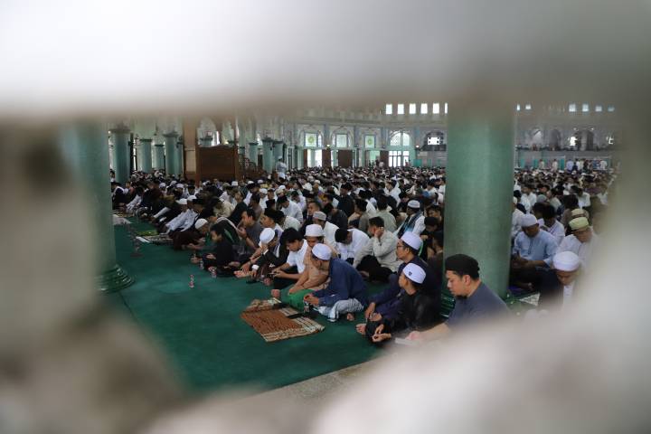 Darto mengungkapkan, jumlah jemaah yang hadir diperkirakan mencapai 20 hingga 25 ribu orang, terlihat dari penuhnya area masjid hingga meluas ke luar ruangan.