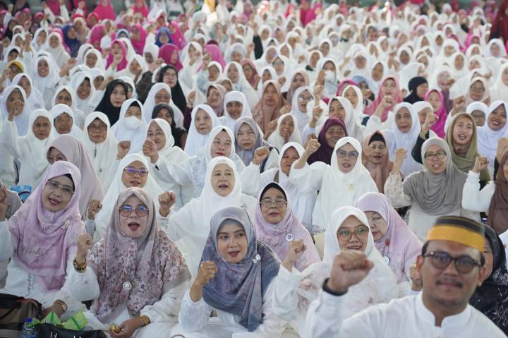 Acara yang menghadirkan penceramah kondang Hj. Mamah Dedeh tersebut, dihadiri ratusan jemaah muslimah yang tampak antusias dan khidmat mengikuti rangkaian kegiatan. Suasana ini mencerminkan semangat untuk terus memperbaiki diri dan memperkuat nilai-nilai keagamaan dalam kehidupan sehari-hari.