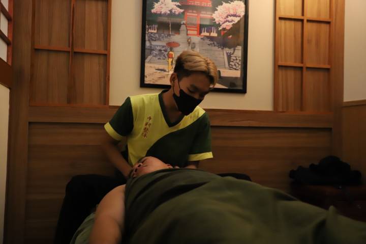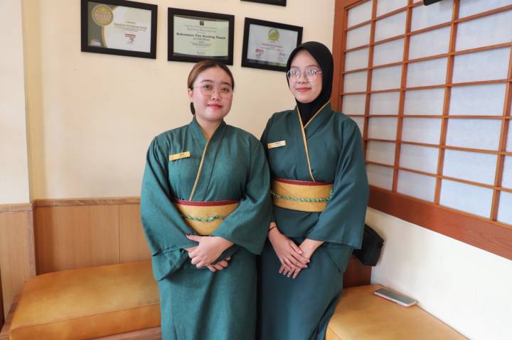 “Di sini kami menggunakan teknik Jepang dengan pendekatan modern. Ada seitai untuk penyelarasan tubuh, terapi zona, refleksi, hingga akupresur,” ujar Aleya Rahmawati, frontliner Nakamura.