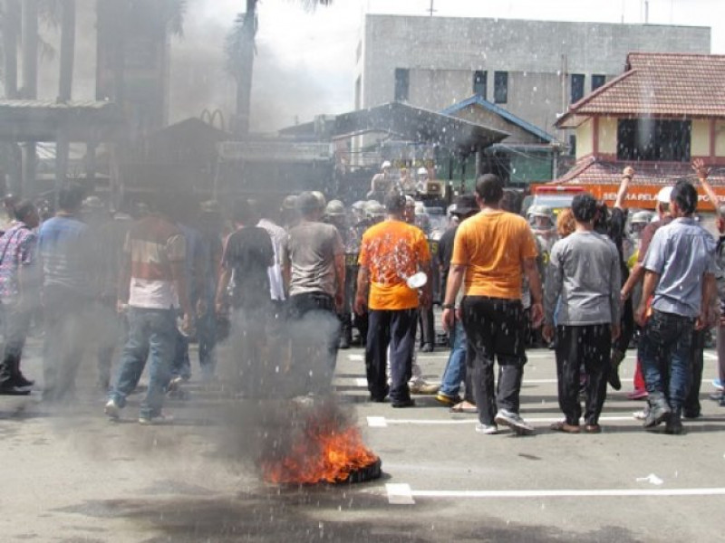 Polres Metro Tangerang yang menurunkan tim negosiator yang terdiri dari para Polwan tidak dapat meredam kemarahan massa, sehingga terpaksa tim negosiator diganti oleh pasukan Dalmas, dan ternyata massa mulai beringas dengan membakar ban dan melempari petugas dengan berbagai benda. Untuk membubarkan massa terpaksa aparat menyemprotkan air dengan watercanon yang sudah disiagakan serta menembakan gas airmata yang dilakukan oleh Raimas Sabhara.