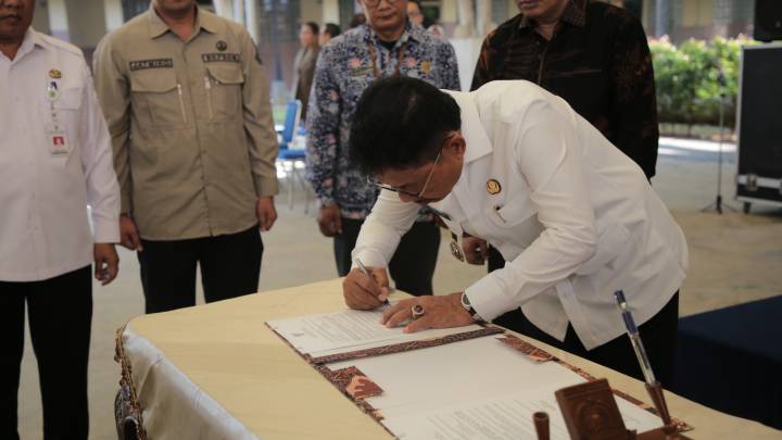 Wali Kota Tangerang Sachrudin melakukan penandatanganan Surat Keputusan (SK) PPPK di Plaza Puspem Kota Tangerang, Provinsi Banten, Rabu (8/10/25)