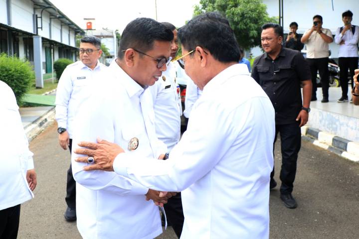 Wali Kota Tangerang H. Sachrudin bersama Gubernur Banten Andra Soni usai Rapat Koordinasi Persiapan Pengelolaan Sampah Menjadi Energi Listrik di Kantor BLKI Provinsi Banten, Tangerang Selatan, Rabu, (05/11/2025)