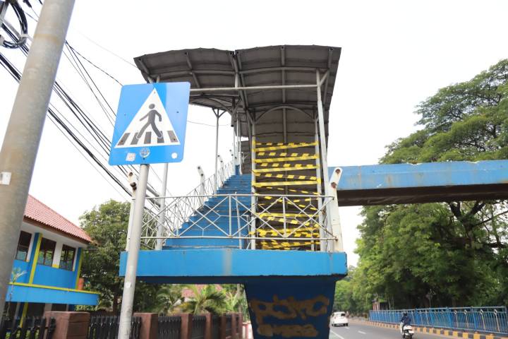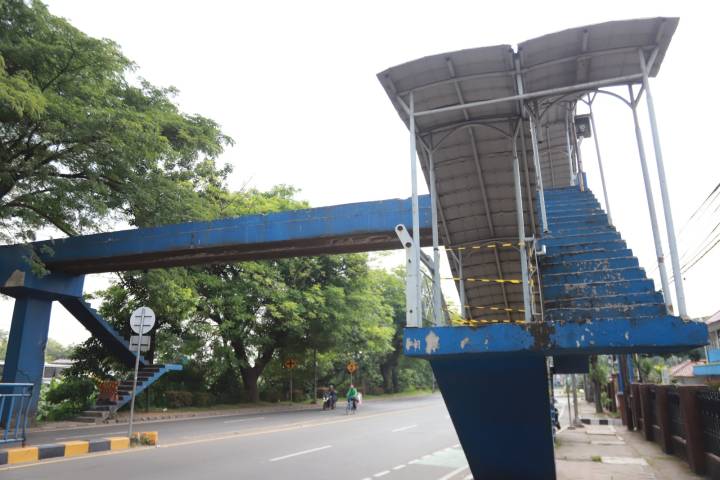 Jembatan Penyebrangan Orang (JPO) ditutup Pemkot Tangerang di Jalan Daan Mogot, Kelurahan Sukaasih, Kecamatan Tangerang, Kota Tangerang, Banten, Selasa (14/10/25).