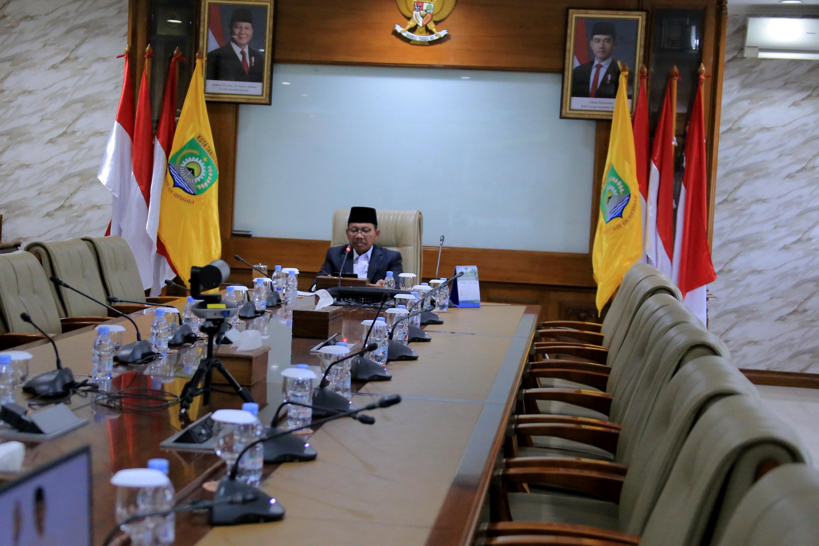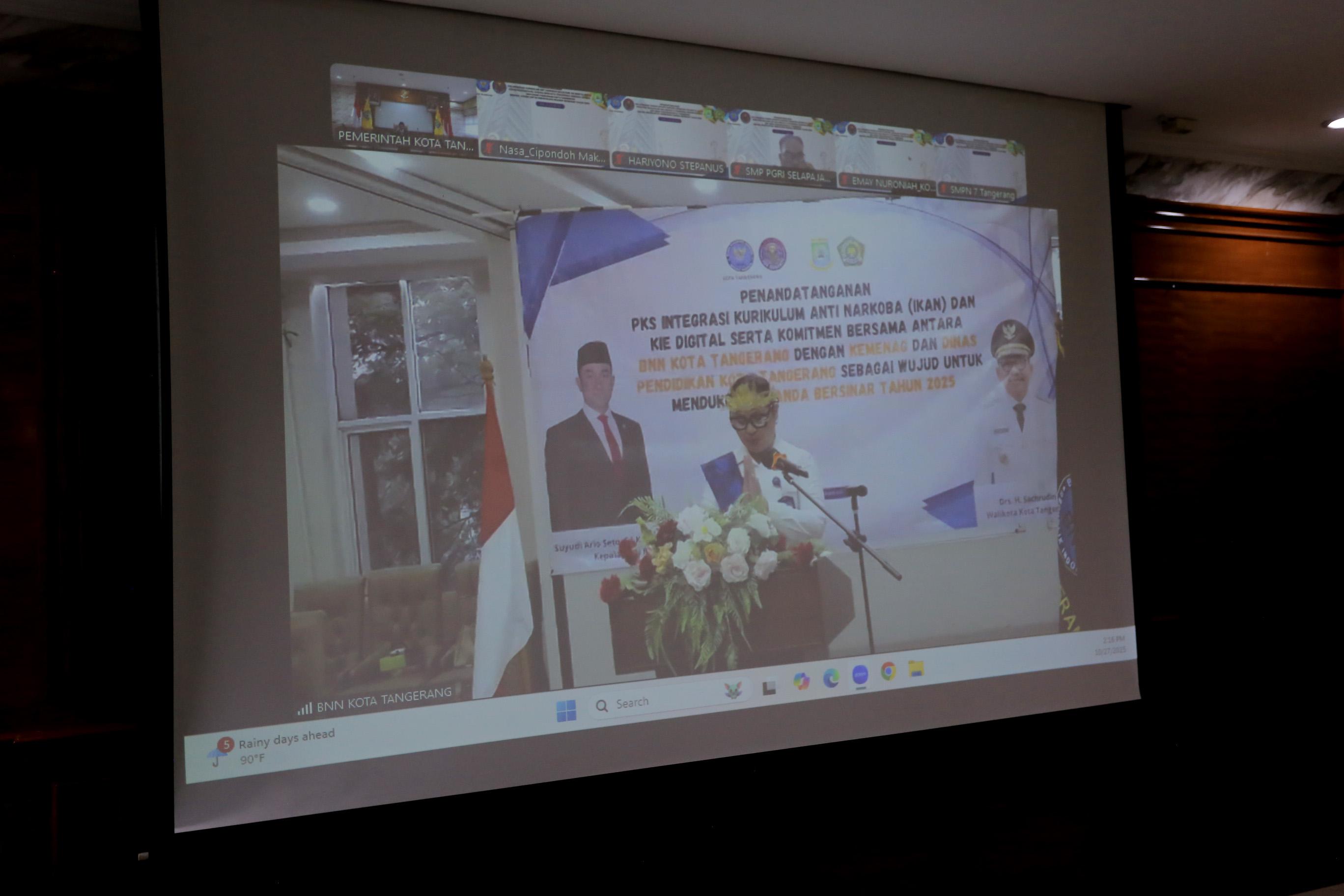 Wali Kota Tangerang Memberikan Sambutan dan Arahan Melalui Zoom Penandatanganan Penerapan Program IKAN BNN