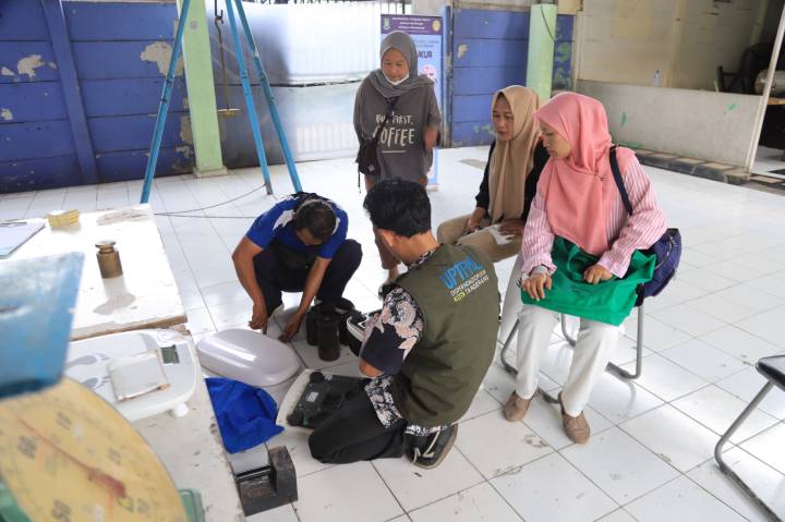 Petugas sedang melakukan tera ulang digital di Kecamatan Batuceper, Kota Tangerang, Banten, Kamis (16/10/25).