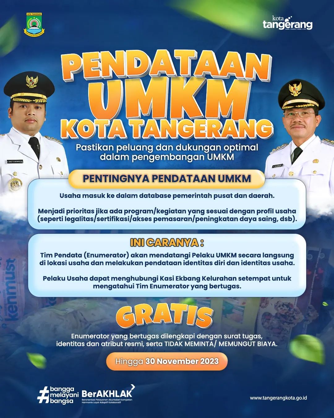 Dinas Perindustrian, Perdagangan, Koperasi, Usaha Kecil dan Menengah Kota Tangerang sedang melaksanakan kegiatan Pendataan UMKM yang berlangsung hingga 30 November 2023 mendatang....