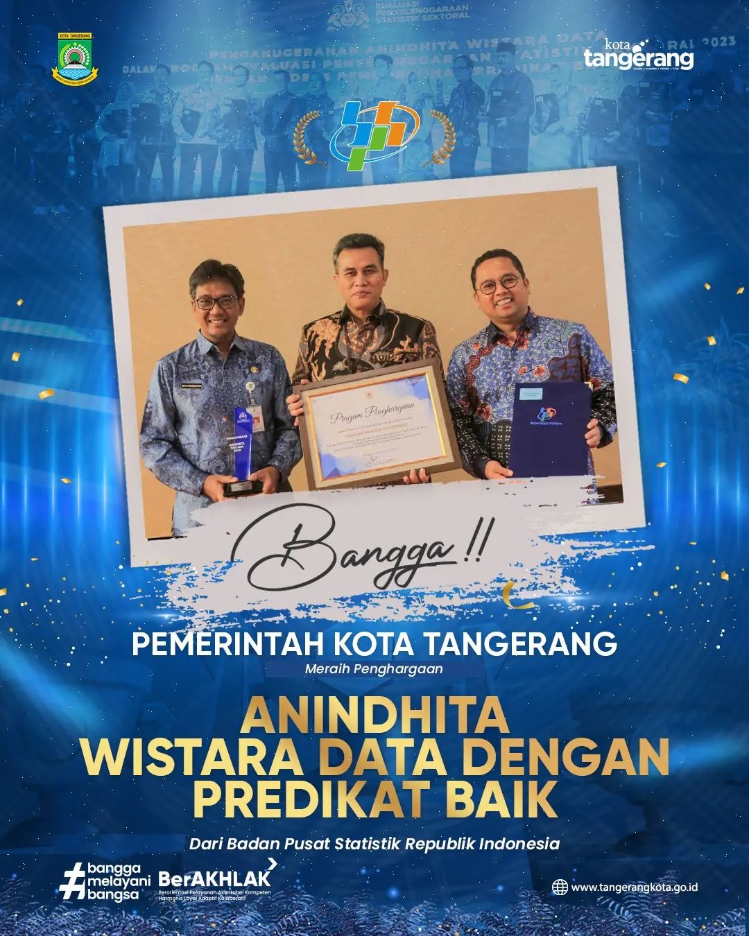 Alhamdulillah Pemerintah Kota Tangerang Telah Meraih Penghargaan Penyelenggaraan Statistik Sektoral 2023 Anindhita Wistara Data dengan predikat baik dari Badan Pusat Statistik!...