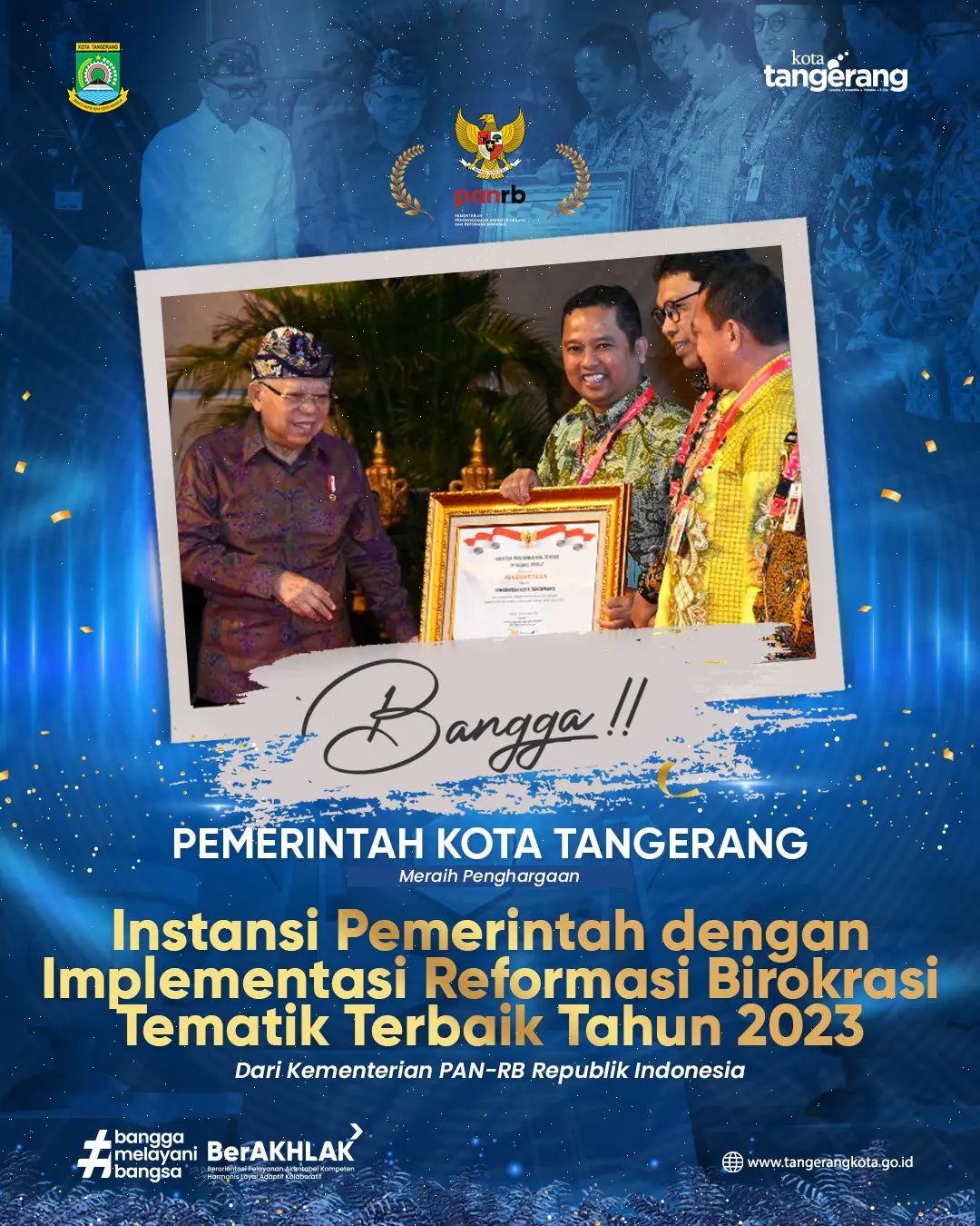 Alhamdulillah, Pemerintah Kota Tangerang telah meraih penghargaan Instansi Pemerintah dengan Implementasi Reformasi Birokrasi Tematik Terbaik Tahun 2023