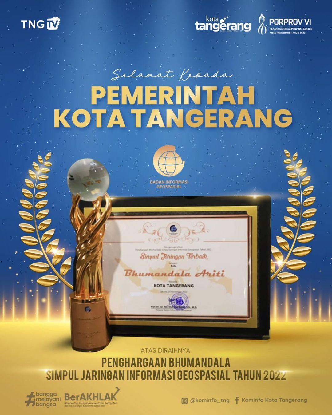 Selamat kepada Pemerintah Kota Tangerang atas diraihnya Penghargaan Bhumandala Simpul Jaringan Informasi Geospasial Tahun 2022....