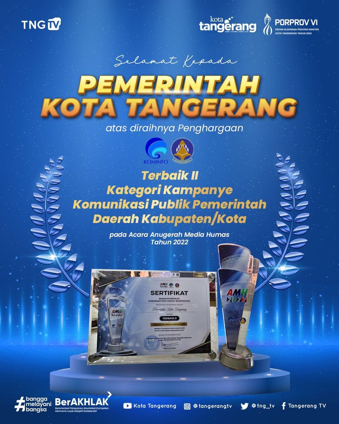 Selamat kepada Pemerintah Kota Tangerang atas diraihnya penghargaan terbaik II dengan kategori Kampanye Komunikasi Publik Pemerintah Daerah Kabupaten/Kota pada...