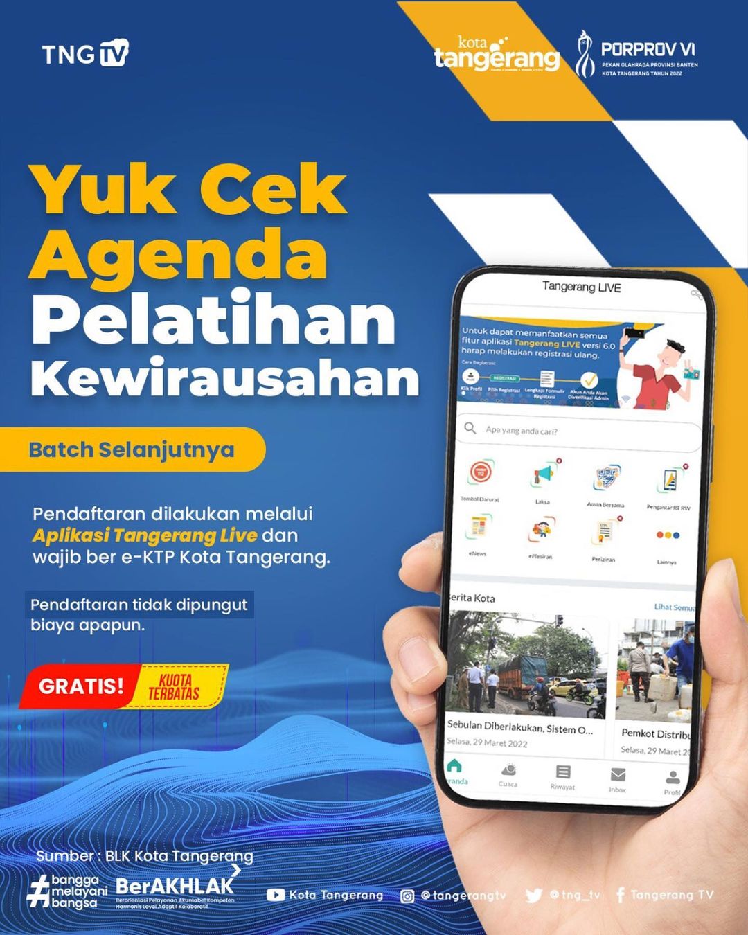 Yuk segera cek agenda pelatihan kewirausahaan dan segera daftarkan diri kalian melalui aplikasi Tangerang Live di Tangerang Cakap Kerja!...