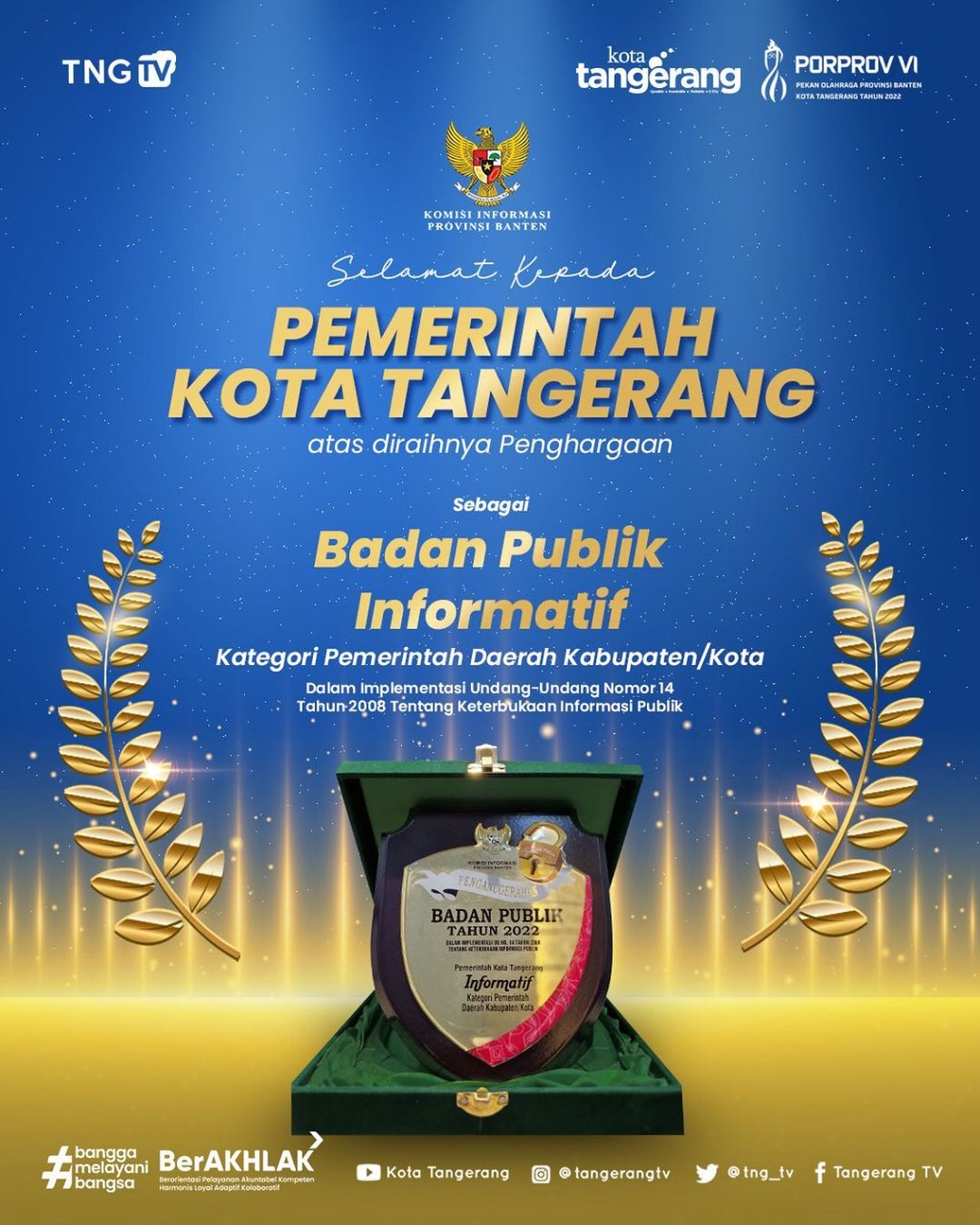 Selamat kepada Pemerintah Kota Tangerang atas diraihnya penghargaan sebagai Badan Publik Informatif di kategori Pemerintah Daerah Kabupaten/Kota....