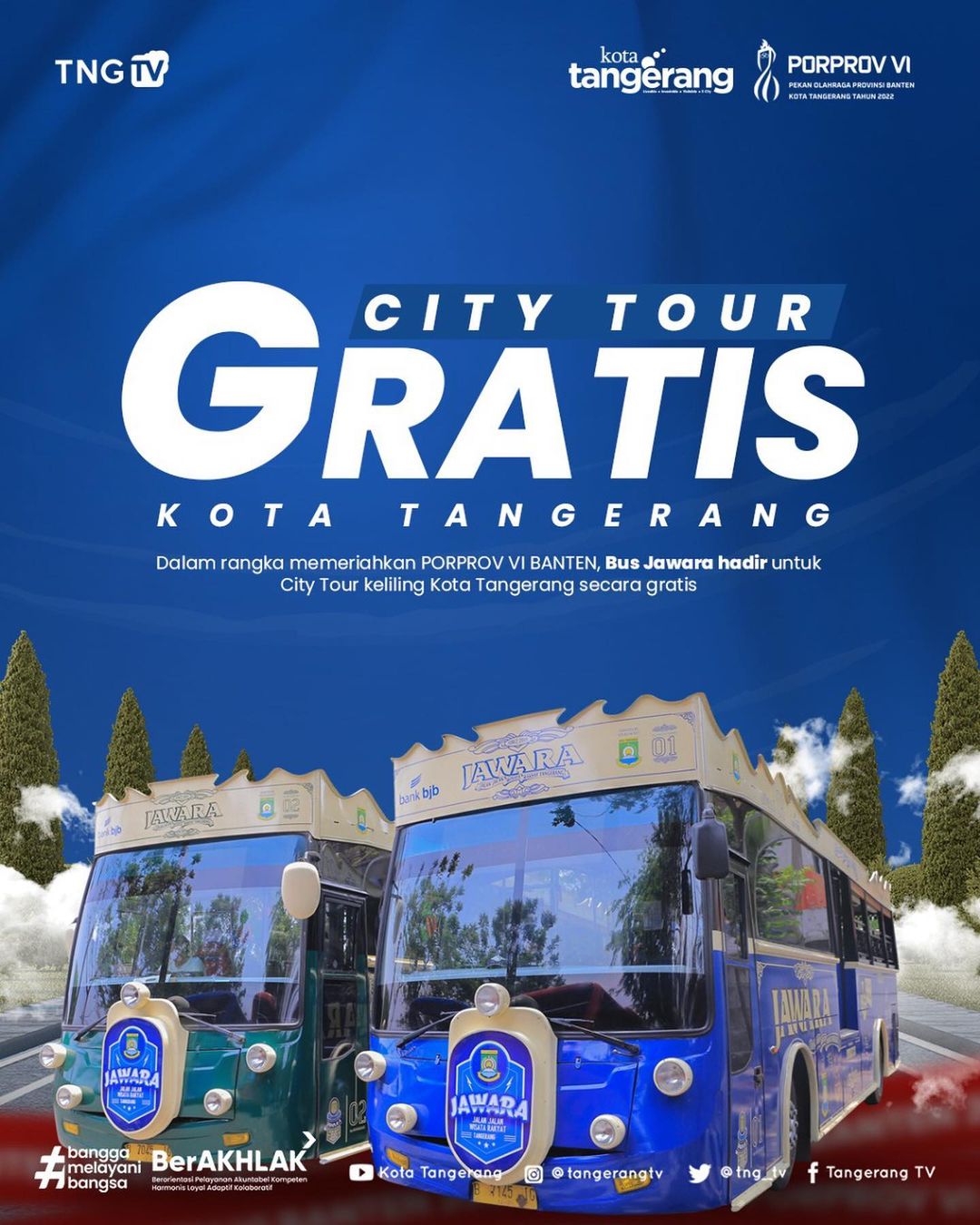 Dalam rangka memeriahkan Porprov VI Banten. Bus jawara hadir untuk membawa kalian berkeliling Kota Tangerang secara GRATIS‼️...