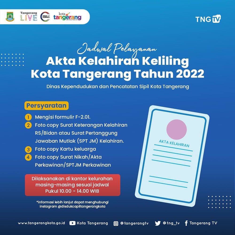 Jadwal Pelayanan Akta Kelahiran Keliling Kota Tangerang Tahun 2022