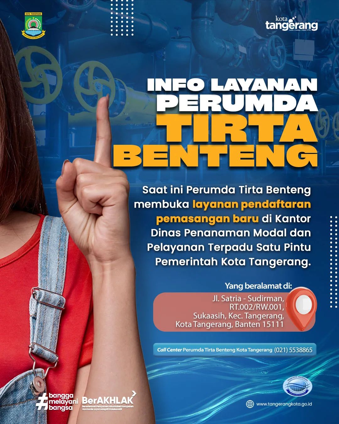 Halo warga #KotaTangerang sudah pada tahu belum kalau sekarang Perumda Tirta Benteng membuka layanan pendaftaran pemasangan baru di Kantor DPMPTSP....