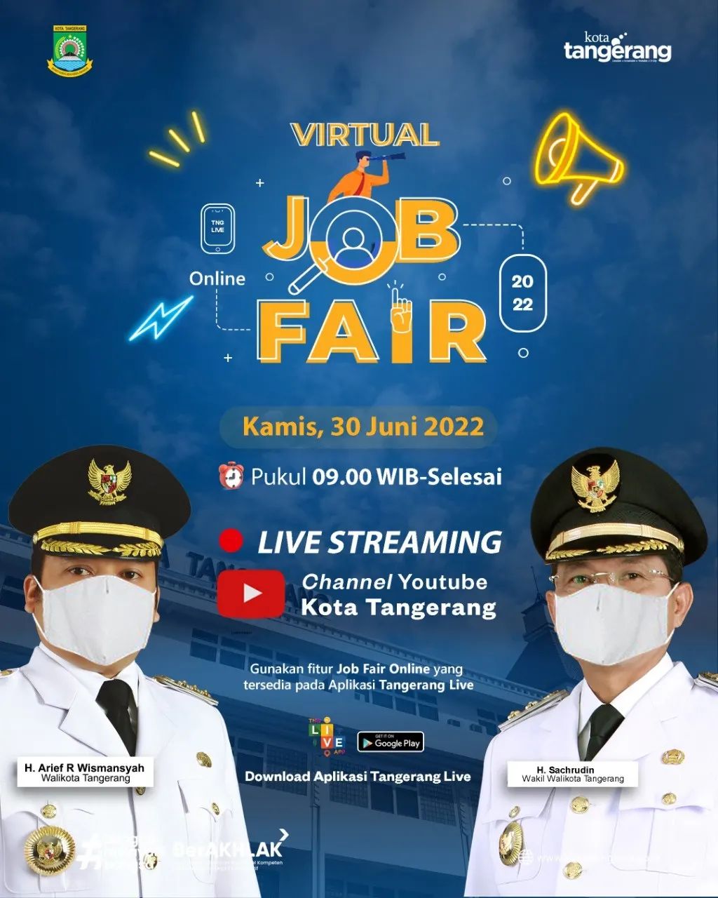 Pengumuman untuk warga #KotaTangerang Virtual Job Fair mengalami perubahan jadwal yaitu pada hari Kamis, 30 Juni 2022 yang diadakan secara Live Streaming...
