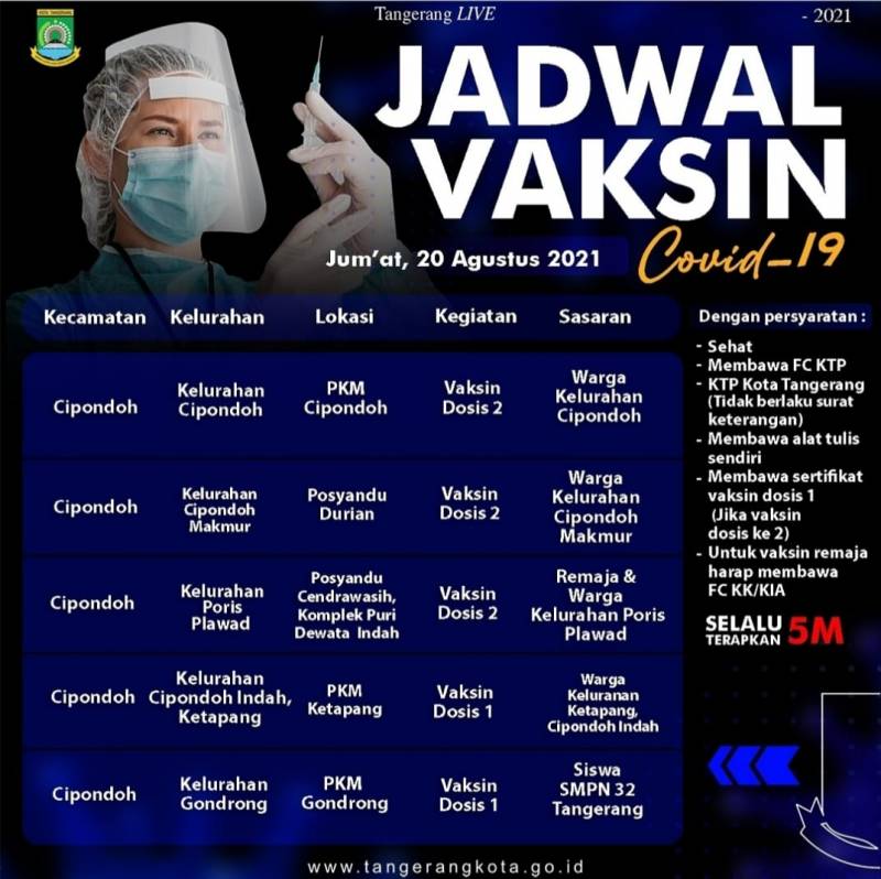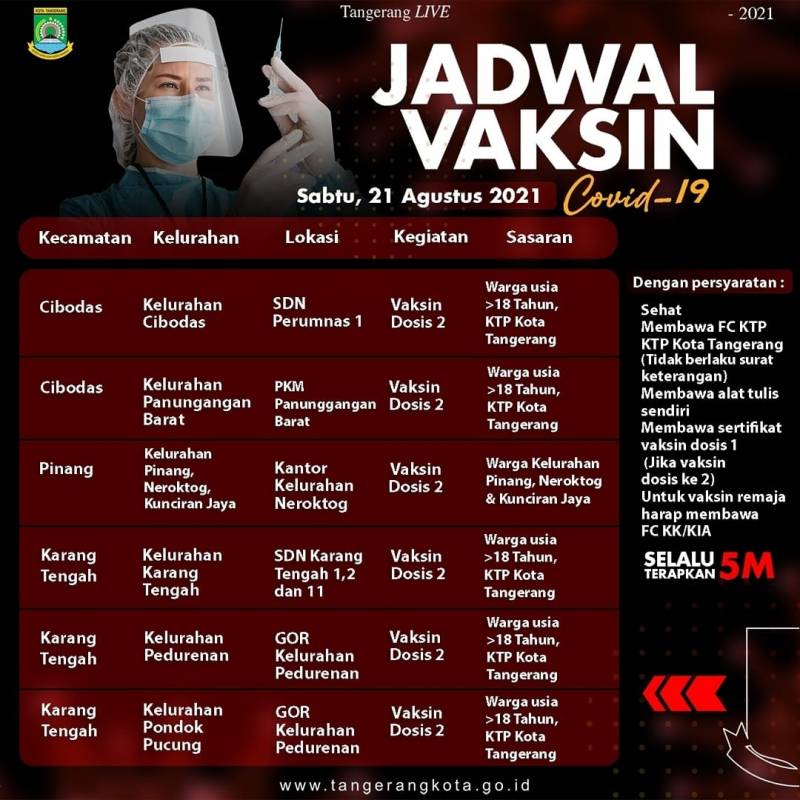 Pemerintah Kota (Pemkot) Tangerang terus menggenjot angka capaian vaksinasi di Kota Tangerang. Tak terkecuali pada sasaran 12 - 17 tahun yang dimulai...
