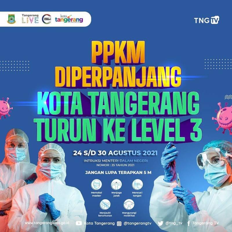 Kota Tangerang mengalami perbaikan status level Pemberlakuan Pembatasan Kegiatan Masyarakat (PPKM) dari yang sebelumnya berada pada level 4 menjadi level 3 berdasar...