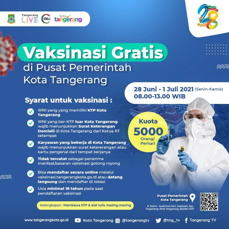 Sebagai bentuk akselerasi vaksinasi covid-19 di Kota Tangerang. Pemerintah Kota Tangerang membuka 108 gerai vaksinasi gratis dengan target 20 ribu sasaran setiap...