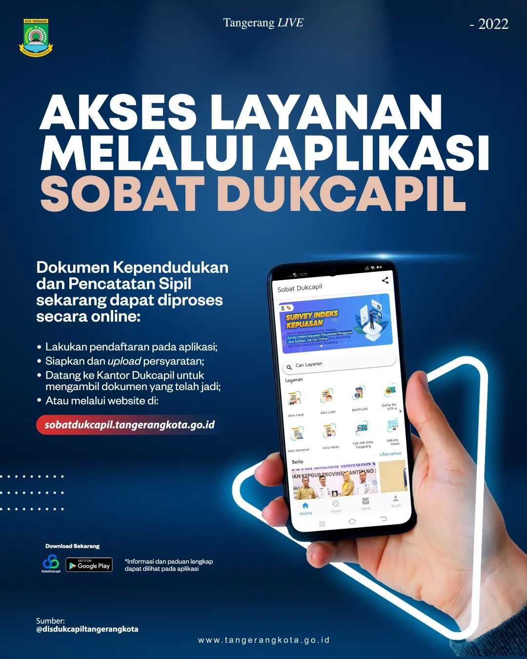 Untuk memudahkan warga #KotaTangerang dalam mengurus Dokumen Kependudukan dan Pencatatan Sipil, warga bisa mengakses secara online nih jadi tidak perlu...