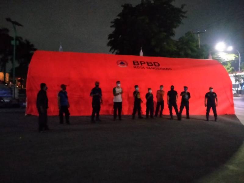 Guna menekan penyebaran covid-19, di wilayah Kota Tangerang, petugas gabungan dari Pemerintah Kota (Pemkot) Tangerang bersama TNI-Polri kembali menggelar check...