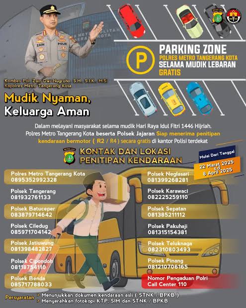 Jelang musim mudik Lebaran, Polres Metro Tangerang Kota membuka layanan penitipan kendaraan bermotor yang bisa dimanfaatkan secara gratis oleh masyarakat...