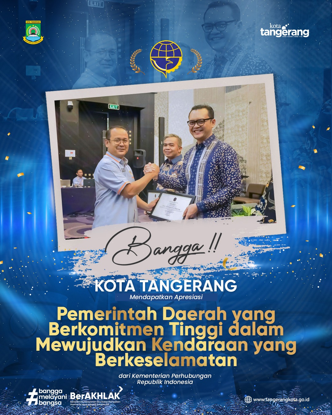 Kementerian Perhubungan Republik Indonesia memberikan penghargaan pada Pemerintah Kota (Pemkot) Tangerang sebagai 'Pemerintah Daerah yang Berkomitmen Tinggi dalam Mewujudkan Kendaraan...