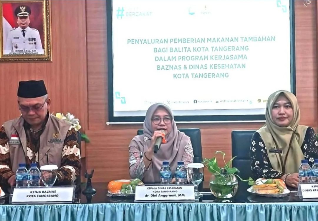 Dinas Kesehatan (Dinkes) bersama Badan Amil Zakat Nasional (BAZNAS) Kota Tangerang menyerahkan bantuan Pemberian Makanan Tambahan (PMT) bagi balita gizi...