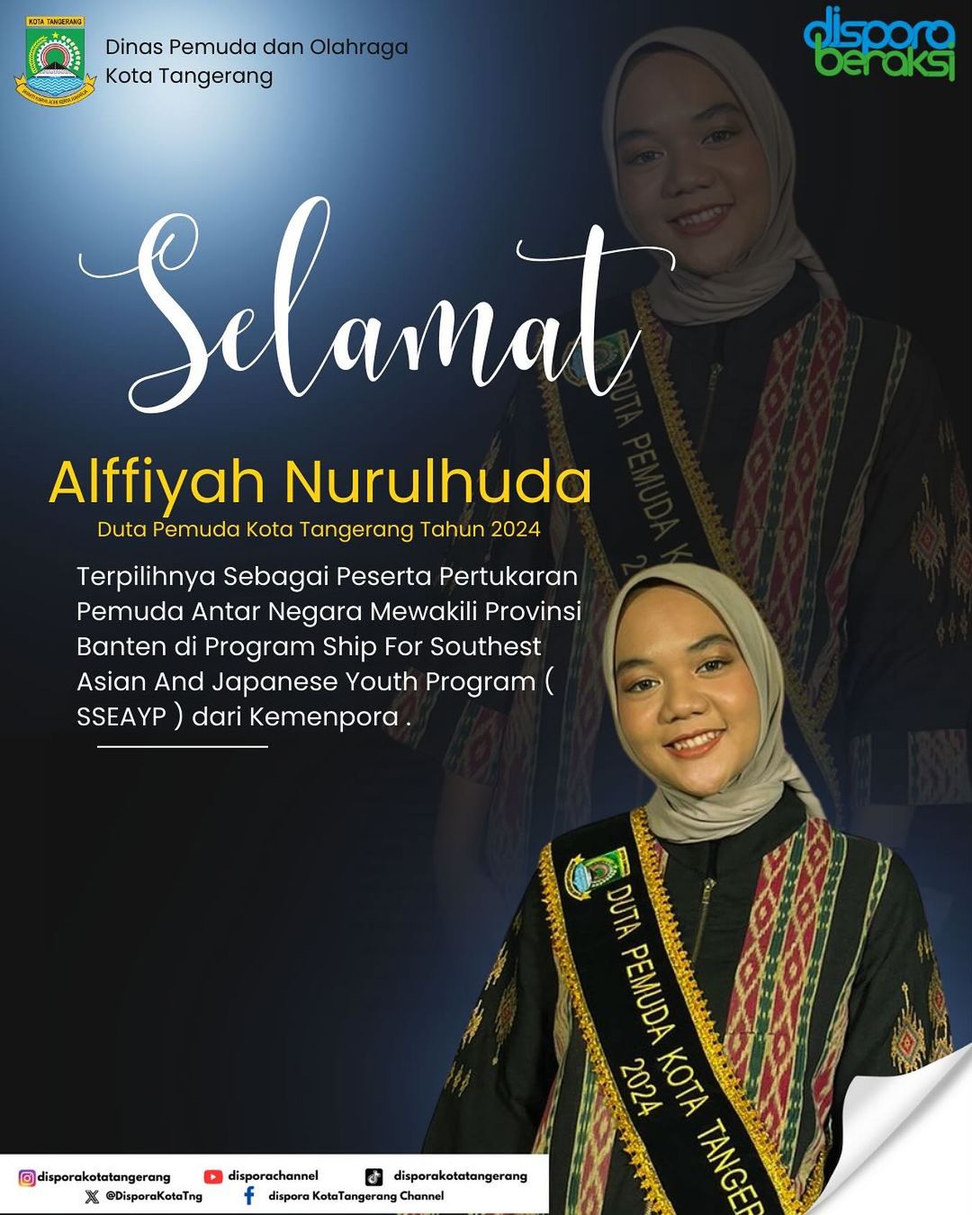 Pemerintah Kota (Pemkot) Tangerang mengapresiasi pencapaian luar biasa yang ditorehkan Duta Pemuda Kota Tangerang 2024, Alfiyah Nurulhuda, yang belum lama ini...